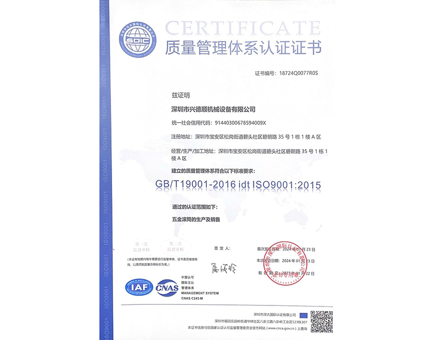 質(zhì)量管理體系認(rèn)證證書